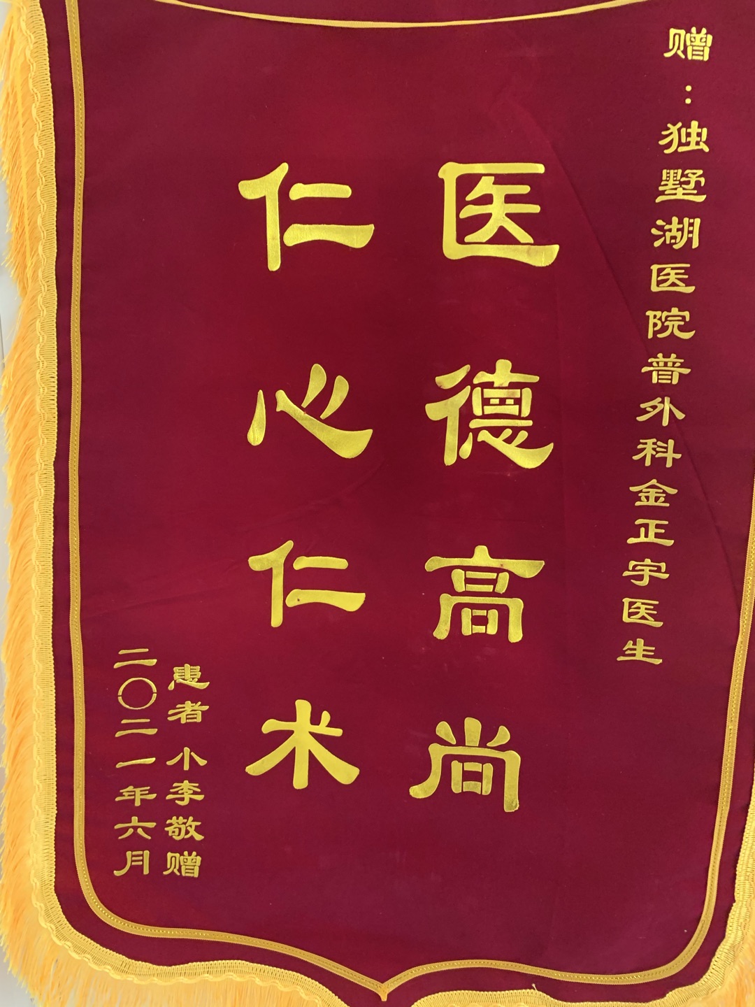 患者小李赠送锦旗感谢我院普外科金正宇医生