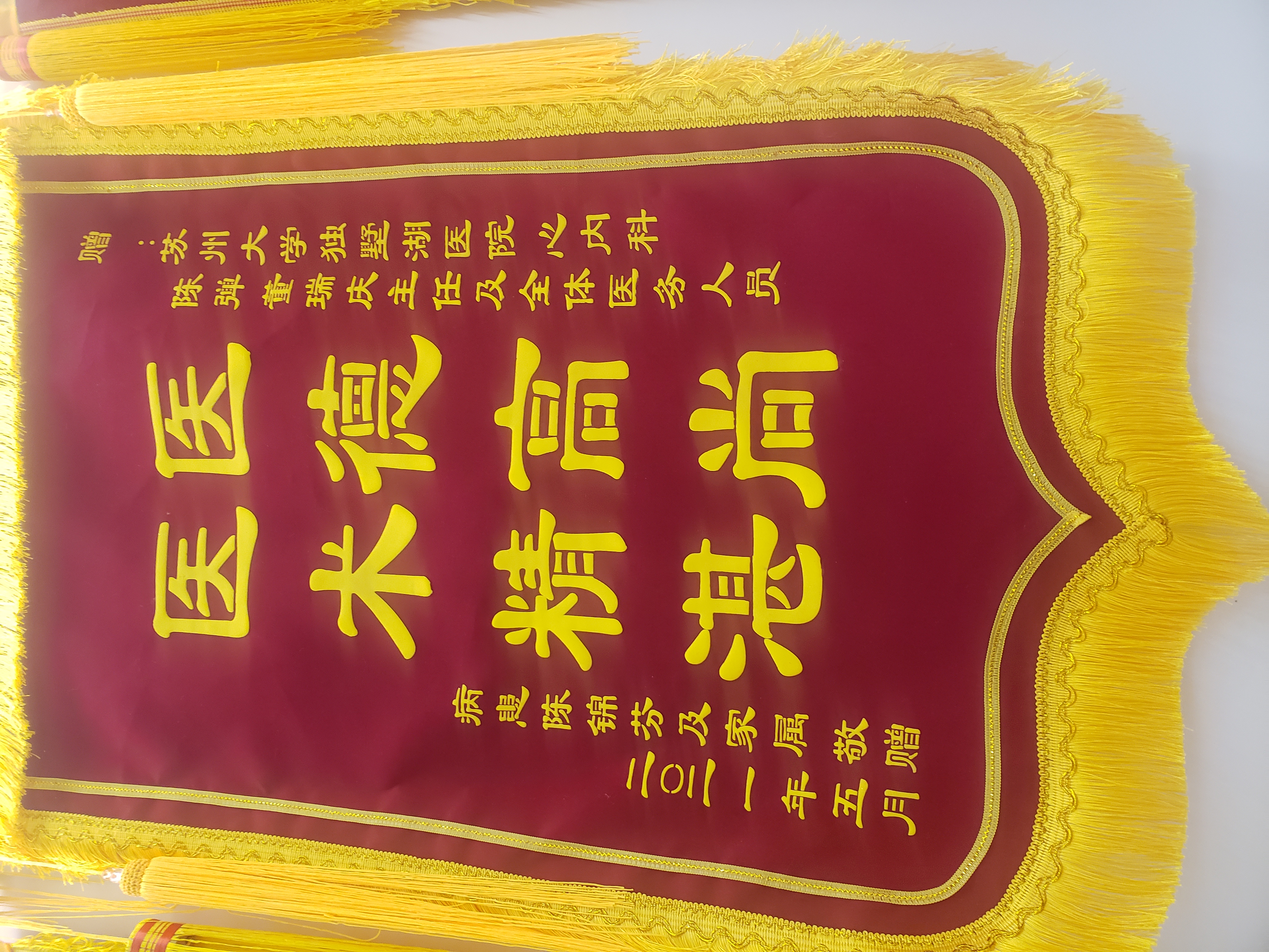 患者陈女士赠送锦旗感谢我院心血管内科陈弹主任医师、董瑞庆医生及全体医护