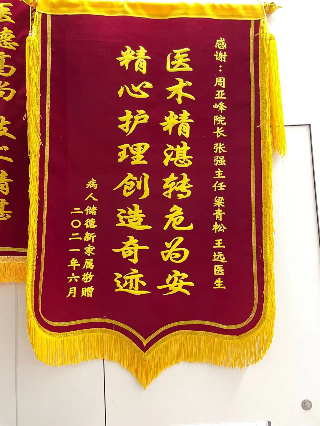 患者储先生赠送锦旗感谢我院周亚峰副院长、心血管内科张强主任医师、梁青松医生、王远医生