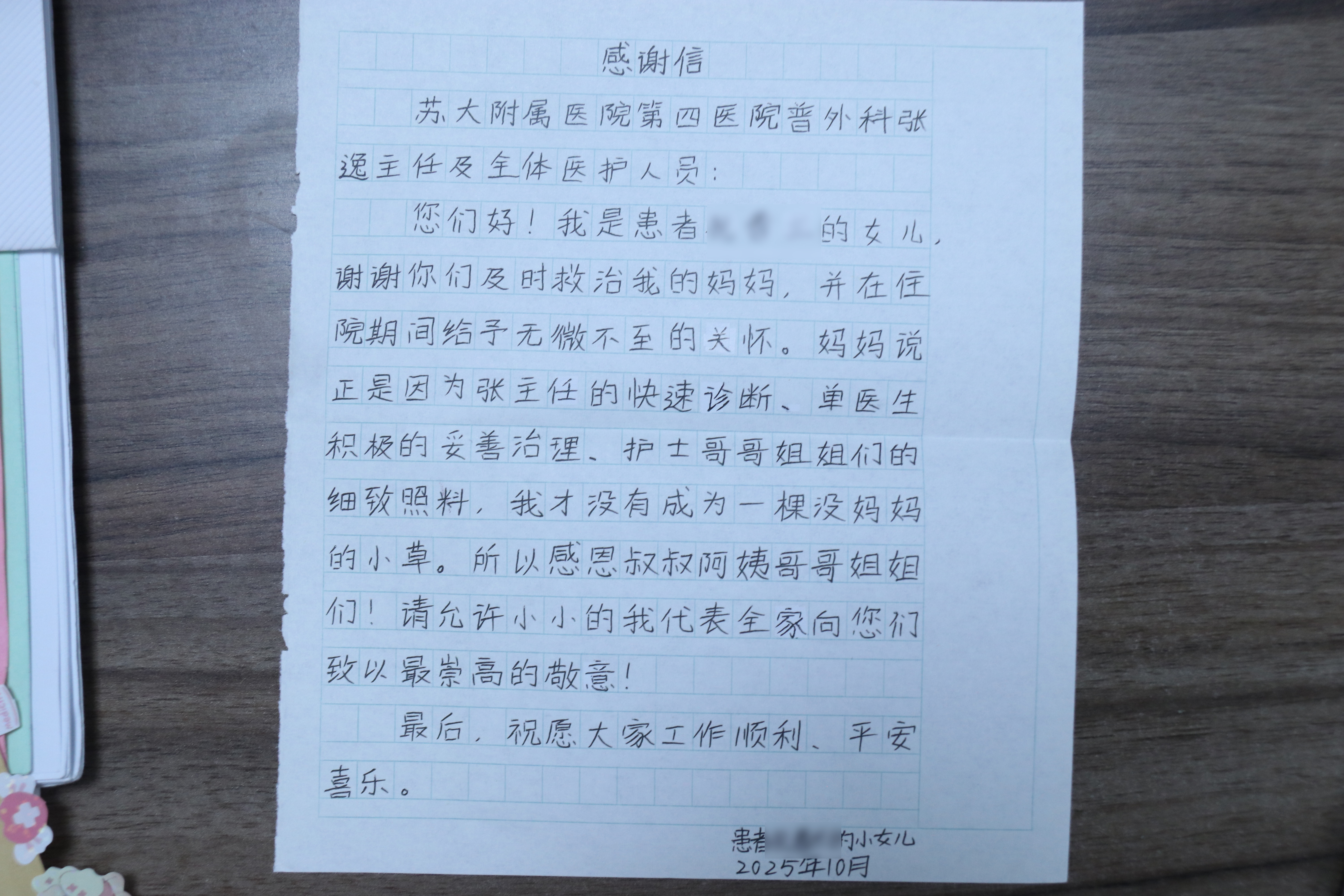 患者孔女士及家人赠送锦旗感谢信等感谢我院普外科李德春教授、张逸副主任医师及全体医护人员