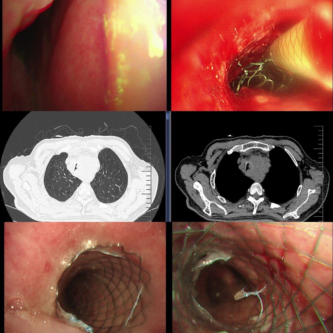 为此,团队多年来深耕气道介入技术创新:气道支架技术”解决首次梗阻,到“支架腔内叠加技术”破解二次狭窄,每一项技术优化都围绕“微创、精准、长效”展开。团队始终以支气管镜微创技术为核心,结合多学科协作(呼吸科、肿瘤科、血管外科与介入科等),为患者制定个体化方案。