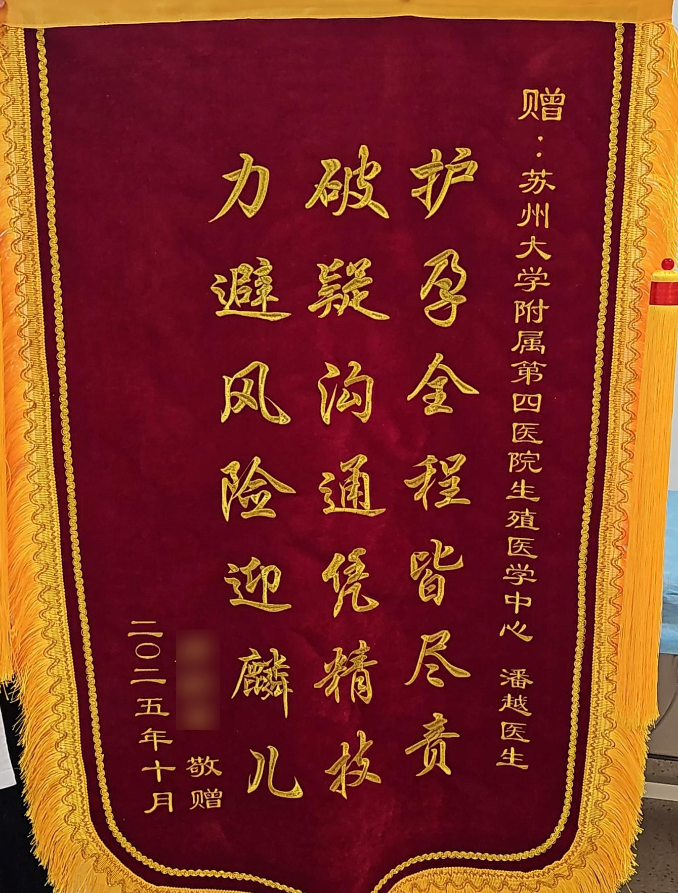 患者郑女士赠送锦旗感谢我院生殖医学科潘越医生