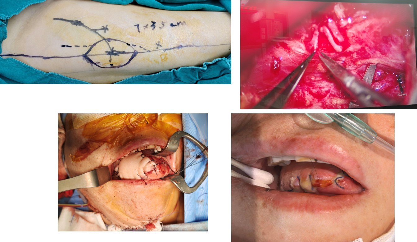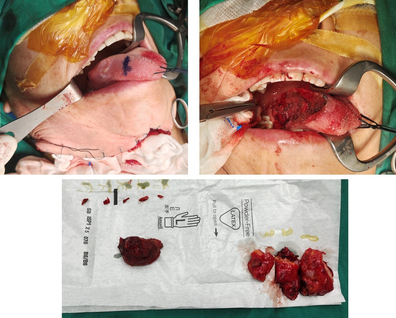 顾女士患有十余年糖尿病史,右舌缘确诊中分化鳞状细胞癌,肿瘤已侵犯肌层超5mm,按“间室切除”理念彻底清除病灶后,将面临近半舌体缺损,严重影响语言、吞咽功能。我院整形外科张建超副主任医师团队以“功能重建与外形修复并重”为目标,主导制定个性化手术方案,并联合多学科高效推进治疗。