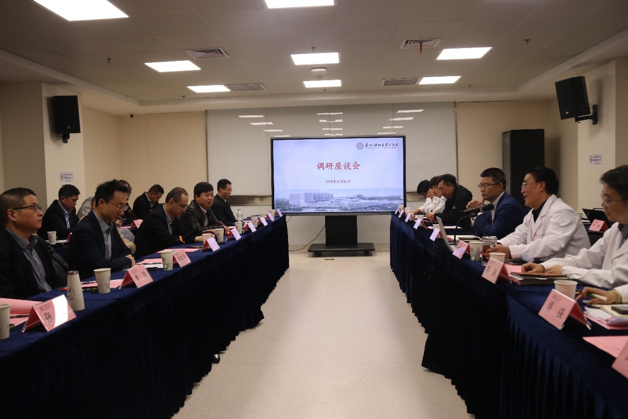 12月10日上午,上海市第一人民医院院长郑兴东一行来到苏州大学附属第四医院开展调研交流,围绕学科建设、医疗服务提升等主题进行深入探讨。苏州大学苏州医学院执行院长李斌,苏大附四院党委书记侯建全、副院长郭强出席。相关职能科室、临床科室负责人参加本次调研座谈会。
