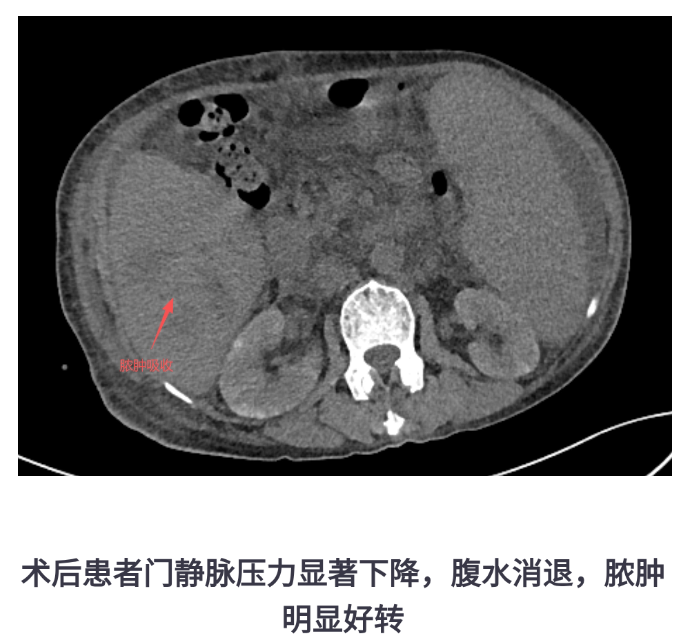 术后,王女士的门静脉压力从术前的较高水平明显下降,肝动脉血流改善,发热控制,病情稳步好转。SAE不仅缓解了脾功能亢进,还间接改善了患者的肝动脉供血,为控制脓肿创造了有利条件。