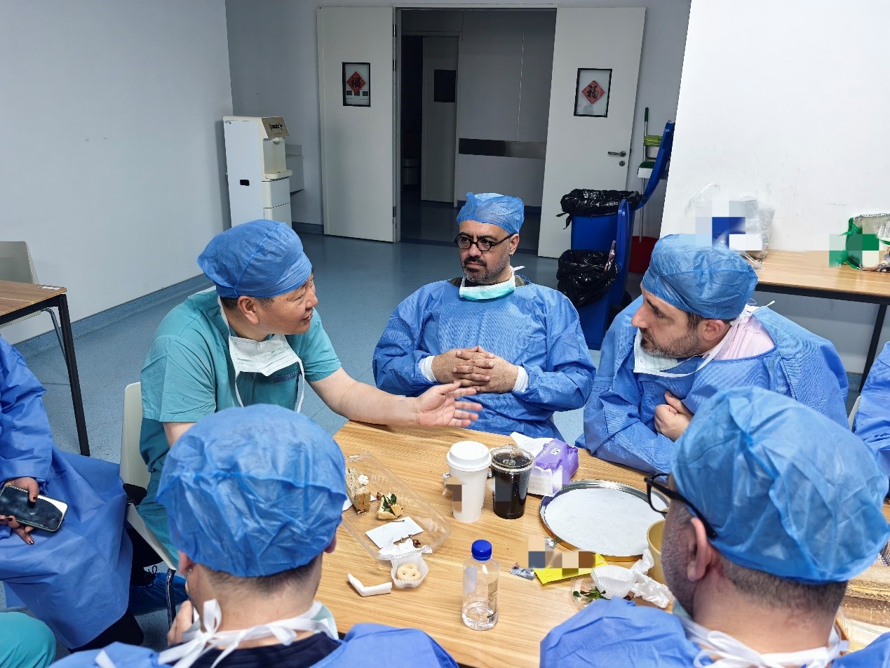 土耳其专家们对我院展示的荧光3D精准肺段切除、免插管纵膈肿瘤手术等技术表现出浓厚兴趣,他们认为苏大附四院的实践经验非常宝贵。土耳其专家提到,手术中展现出的精准解剖、流畅操作以及对快速康复理念的贯彻,体现了团队高超的专业素养和以患者为中心的服务理念。贵院胸心外科的发展路径和学科建设模式,尤其是在临床与科研紧密结合、依托重点实验室推动转化方面的做法,值得深入学习。